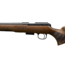 The 457 Royal is a return to the roots of rimfire rifles and is styled after classic hunting rifles. With a sporter-weight barrel and no sights, the Royal can be had with either a 412.5 or 525mm barrel. The premium walnut stock has a fancy encap and is equipped with flush safari-style QD sling points. the stock design melds old and new features, with a high, straight comb, round cheekpiece and slim forend.