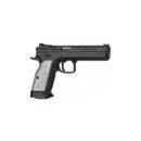 A generational leap forward, this sports special is built to dominate competition in IPSC Standard Division and USPSA, as well as in other target shooting disciplines and hobby target shooting. The TS 2 base model is suitable for beginners and advanced competitors alike. The pistol is equipped with flat, silver anodized duralumin grips, solid metal sights, extended manual safety on the left side and flat manual safety on the right side. A pin for replacement of the slide stop is included as part of the package.