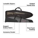 Officially licensed Ruger® American Rifle® Case fits rifles up to 46-inches with optics. Constructed of rugged Endura fabric over thick foam padding gives you a very durable case that will fully protect your rifle. A zippered storage pocket on the side gives you the room to store smaller accessories that you need at the range. Made in the USA.
