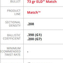 Hornady Ammo 223 Rem 73gr ELD Match 20pk
